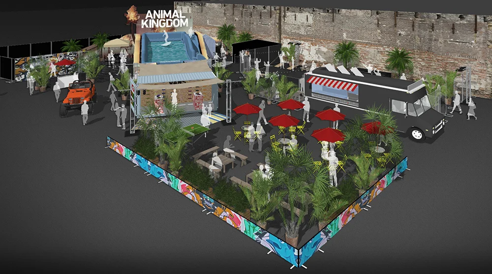 Oceanside life is brought to SXSW where guest can surf the FlowRider, build custom skate shoes, dance, play games or relax in the food truck cafe.